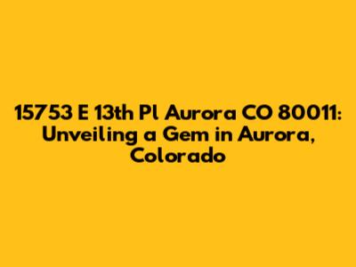 Hey guys! Let's dive deep into everything you need to know about the property located at 15753 E 13th Pl, Aurora, CO 80011. This isn't just another address; it's a place with potential, a spot with a story, and a location brimming with possibilities. Whether you're a prospective buyer, a curious neighbor, or just someone interested in real estate, stick around as we unpack all the details about this Aurora address.