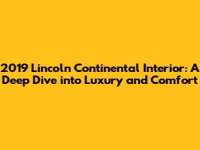 Hey guys! Ever wondered what it's like to step into a world of pure luxury? Well, buckle up, because we're about to take a deep dive into the 2019 Lincoln Continental interior. This isn't just about a car; it's about an experience. Lincoln really went all out to create a space that’s both stunning and incredibly comfortable. From the moment you open the door, you're greeted with an ambiance that screams sophistication. Let's explore what makes this interior so special, shall we?