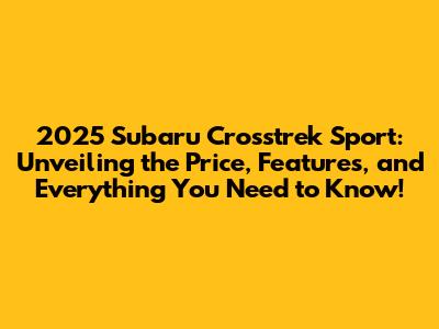 2025 Subaru Crosstrek Sport: Price, Features, And More!