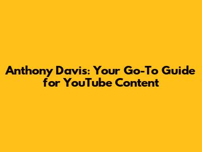 Anthony Davis: Your Go-To Guide For YouTube Content