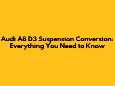 So, you're thinking about diving into an Audi A8 D3 suspension conversion? Awesome! This is a pretty popular upgrade for those looking to enhance their ride quality, handling, or even just the overall look of their beloved A8. But before you jump in headfirst, let's break down everything you need to know to make sure this project goes smoothly. We'll cover the why, the how, and the what-to-watch-out-for so you can make an informed decision and enjoy the process. Trust me, with the right knowledge, you'll be cruising in style and comfort in no time!
