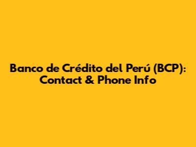 Banco De Crédito Del Perú (BCP): Contact & Phone Info