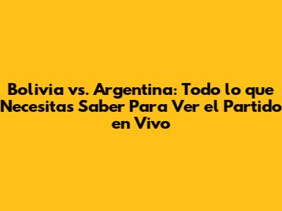 ¡Amigos, estamos a punto de vivir un gran partido! Bolivia vs. Argentina promete ser un encuentro lleno de emoción y sorpresas. Sigan nuestra guía para saber dónde y cómo ver el partido en vivo, y prepárense para disfrutar de cada minuto. ¡Que gane el mejor, y que la pasión por el fútbol nos una! ¡Nos vemos en el campo (o en la pantalla)! ¡A disfrutar del fútbol, gente!