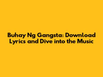 Buhay Ng Gangsta: Download Lyrics And Dive Into The Music