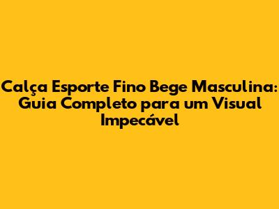 Calça Esporte Fino Bege Masculina: Guia Completo Para Um Visual Impecável
