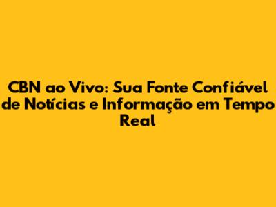 CBN Ao Vivo: Notícias E Informação Em Tempo Real