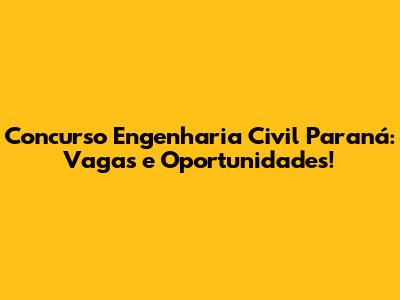 Concurso Engenharia Civil Paraná: Vagas E Oportunidades!