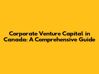 Corporate Venture Capital In Canada: A Comprehensive Guide