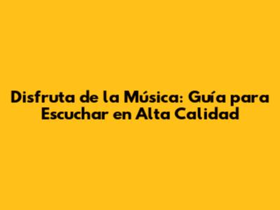 Disfruta De La Música: Guía Para Escuchar En Alta Calidad
