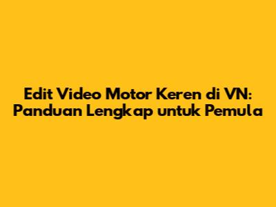 Edit Video Motor Keren Di VN: Panduan Lengkap Untuk Pemula