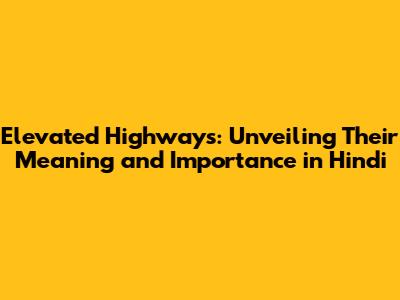 Elevated Highways: Meaning And Importance In Hindi