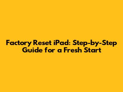 Factory Reset IPad: Step-by-Step Guide For A Fresh Start