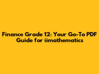 Finance Grade 12: Your Go-To PDF Guide For Iimathematics