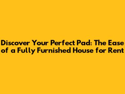 Discover Your Perfect Pad: The Ease of a Fully Furnished House for Rent