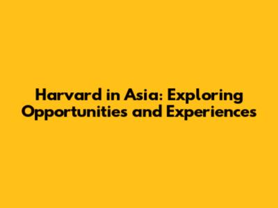 Harvard In Asia: Opportunities & Experiences