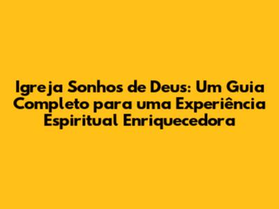 Igreja Sonhos De Deus: Guia Completo Para Conhecer