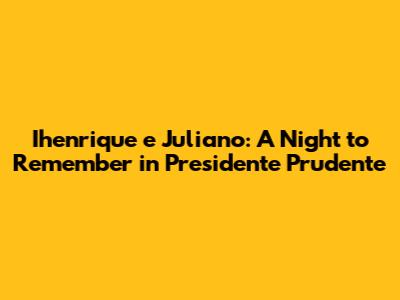 Hey music lovers! Get ready to dive into the electrifying world of Ihenrique e Juliano, as we gear up to explore their unforgettable show in Presidente Prudente. This dynamic duo has been taking the Brazilian music scene by storm, and their performances are nothing short of spectacular. If you're a fan of sertanejo, or simply love a great live show, you're in for a treat! We're talking about the energy, the music, the atmosphere – everything that makes a concert experience truly special. So, grab your virtual backstage pass, and let’s get this show on the road. We'll be chatting about what makes Ihenrique e Juliano so awesome, what you can expect from their live performances, and why their show in Presidente Prudente is a must-see event. Buckle up, because it's going to be a fun ride!