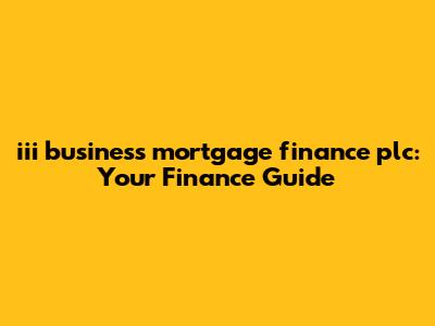 Alright, guys, let's dive into the world of iii business mortgage finance plc. If you're scratching your head wondering what this is all about, you're in the right place. This article is designed to break down everything you need to know in a way that’s easy to understand and, dare I say, maybe even a little fun.