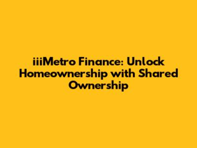 IiiMetro Finance: Unlock Homeownership With Shared Ownership