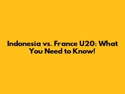 Indonesia Vs. France U20: What You Need To Know!