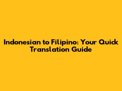 Indonesian To Filipino: Your Quick Translation Guide