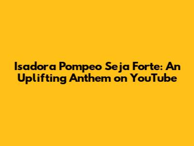 Hey guys! Have you ever stumbled upon a song that just instantly lifts your spirits? Well, let me tell you about Isadora Pompeo's "Seja Forte," a total anthem of strength and resilience that's been making waves on YouTube. This isn't just another music video; it's a powerful message wrapped in beautiful melodies and stunning visuals. If you're looking for a dose of inspiration, stick around as we dive deep into what makes this song and video so special. We'll explore the themes, the impact it's had, and why it continues to resonate with so many people around the globe. So, grab your headphones, get comfy, and let's get started!