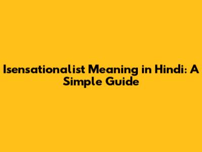 Isensationalist Meaning In Hindi: A Simple Guide