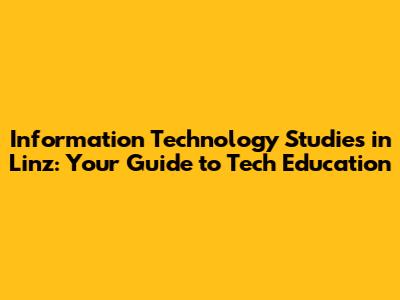 IT Studies In Linz: Your Guide To Tech Education