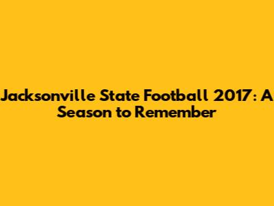 Jacksonville State Football 2017: A Season To Remember