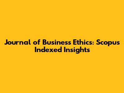 Journal Of Business Ethics: Scopus Indexed Insights