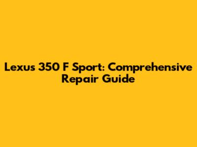 Lexus 350 F Sport: Comprehensive Repair Guide