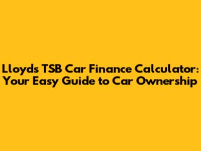 Hey there, car enthusiasts! Are you dreaming of cruising down the road in a shiny new (or new-to-you) ride? Well, you're in the right place! We're diving deep into the world of Lloyds TSB car finance calculators, your secret weapon for making those car dreams a reality. We're going to break down how these calculators work, what they offer, and how you can use them to snag the best deal possible. Forget confusing jargon and overwhelming numbers тАУ we're keeping it simple and fun, just like buying your first car should be. So, grab a cuppa (or your favorite beverage), and let's get started.
