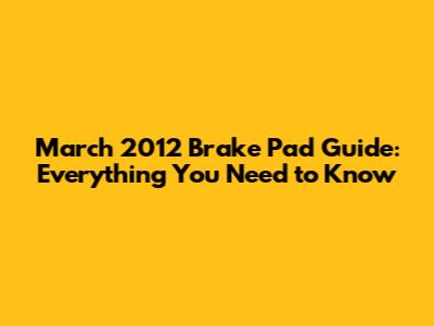 March 2012 Brake Pad Guide: Everything You Need To Know