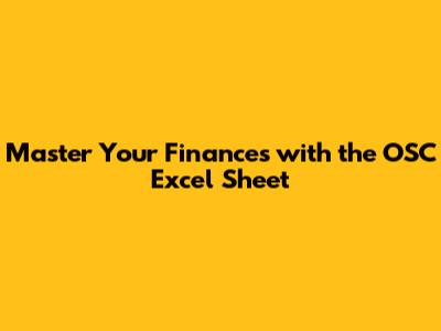 Master Your Finances With The OSC Excel Sheet