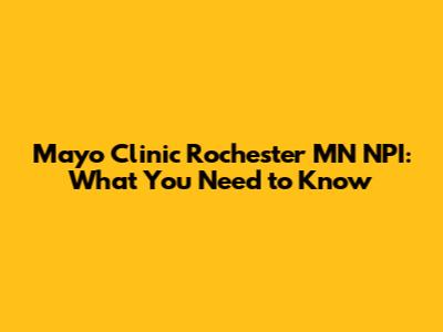 Mayo Clinic Rochester MN NPI: What You Need To Know