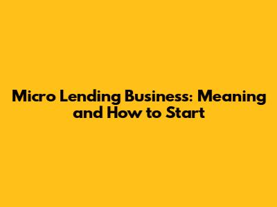 Micro Lending Business: Meaning And How To Start