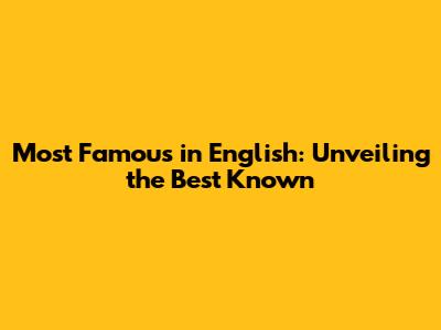 Most Famous In English: Unveiling The Best Known