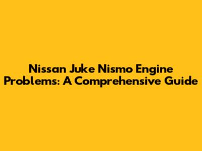 Nissan Juke Nismo Engine Issues: Common Problems