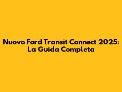 Ciao a tutti, appassionati di veicoli commerciali e futuri proprietari di furgoni! Siete pronti a scoprire il nuovo Ford Transit Connect 2025? Beh, siete capitati nel posto giusto! In questo articolo, ci immergeremo a capofitto nel mondo di questo fantastico veicolo, esplorando ogni dettaglio, dalle sue caratteristiche tecniche alle sue innovazioni, passando per le sue prestazioni e il suo design. Quindi, allacciate le cinture e preparatevi a un viaggio entusiasmante nel futuro del trasporto leggero. Il nuovo Ford Transit Connect 2025 si preannuncia come un vero e proprio punto di svolta nel settore, promettendo efficienza, versatilità e tecnologia all'avanguardia. Ma andiamo con ordine, scoprendo insieme tutto quello che c'è da sapere su questo straordinario furgone.