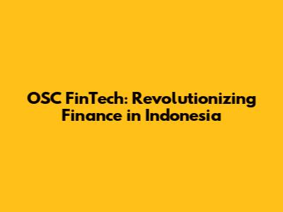 OSC FinTech: Revolutionizing Finance In Indonesia