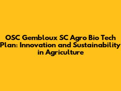 Hey guys! Ever heard of OSC Gembloux SC Agro Bio Tech Plan? It's a big deal in the world of agricultural innovation and sustainable technology. This plan is all about pushing the boundaries of what's possible in agriculture, blending cutting-edge technology with a deep respect for our environment. Let's dive into what makes this plan so important and how it's shaping the future of farming.