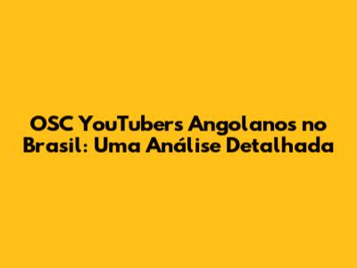 OSC YouTubers Angolanos No Brasil: Uma Análise Detalhada