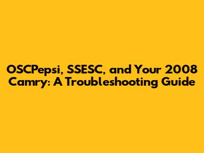 OSCPepsi, SSESC, And Your 2008 Camry: A Troubleshooting Guide