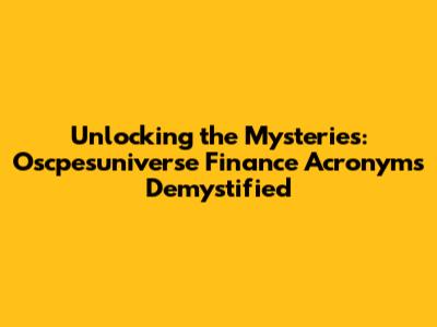 Oscpesuniverse Finance Acronyms Explained