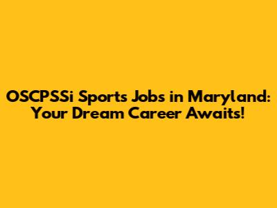 OSCPSSi Sports Jobs In Maryland: Your Dream Career Awaits!