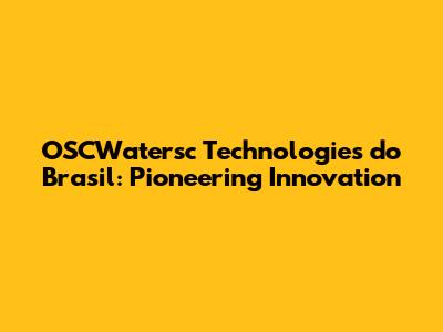 OSCWatersc Technologies: Innovations In Brazil