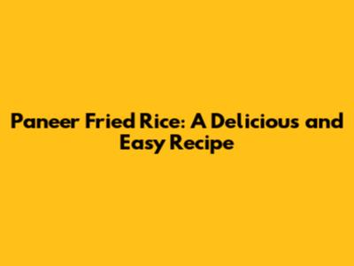 Paneer Fried Rice: A Delicious And Easy Recipe