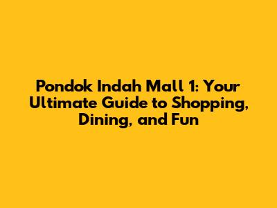 Pondok Indah Mall 1: Your Guide To Shopping, Dining, And Fun