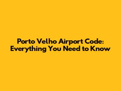 Porto Velho Airport Code: Everything You Need To Know