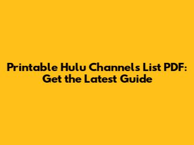 Printable Hulu Channels List PDF: Get The Latest Guide